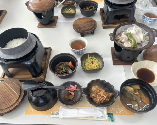 魚沼産コシヒカリを使用し、ぜんまい煮やけんちん汁、そしてなんといってもメインの豚の陶板焼きなど盛りだくさんのメニューでした。