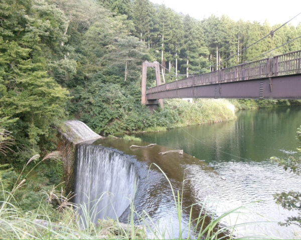 湖畔の吊橋からは四十八滝も見ることができ、あわせて天気が良ければ大源太山も見ることができます。