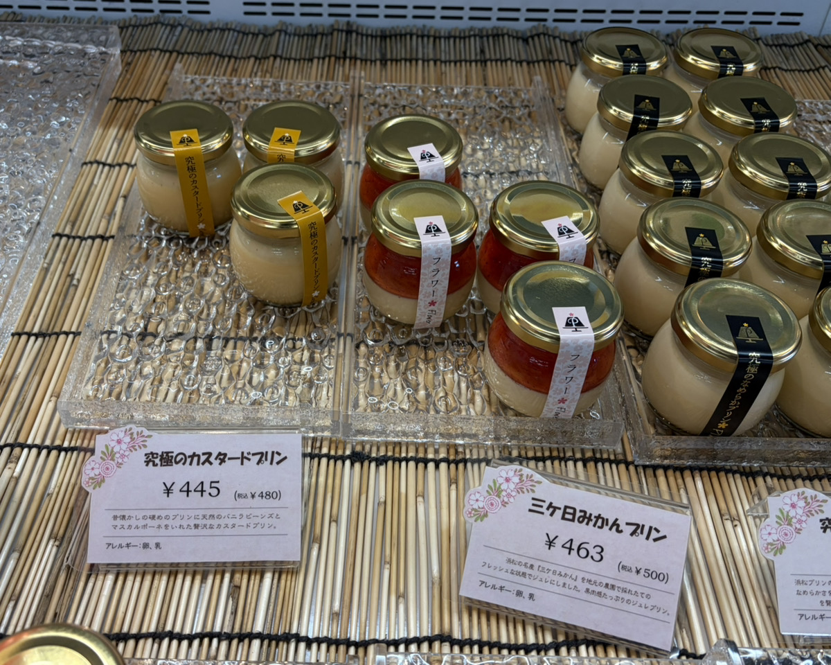 定番のプレーンやここにしかないローズヒップの風味がアクセントのフラワープリン、浜松の名産の「三ヶ日みかん」を使ったプリンなど、さまざまな種類のプリンがあります。